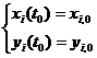 момент времени t0 = 0 их местоположение на плоскости определяется