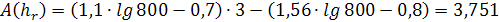 Найдем поправочный коэффициент A(hr) для сельской местности по формуле:
