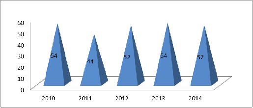 Количество пожаров за период с 2010 года по 2014 год уменьшилось на 2 пожара.