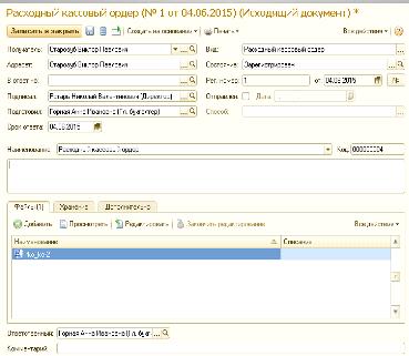 Рис. 13. Карточка документа расходный кассовый ордер