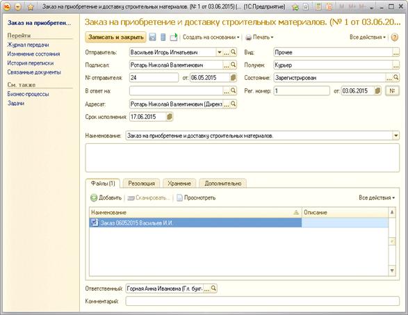 Рис. 14. Карточка входящего документа