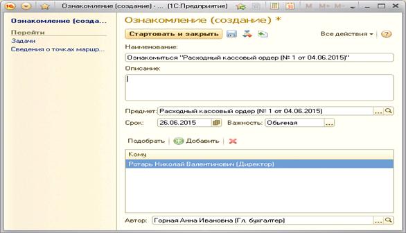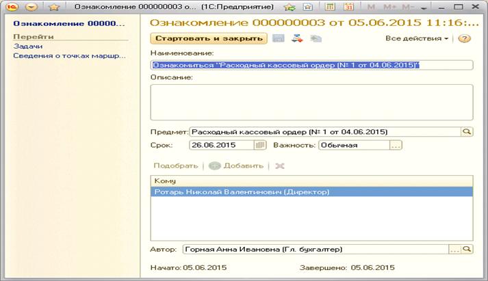 бизнес-процесс «Ознакомление» сначала сформирует задачу «Ознакомиться» для