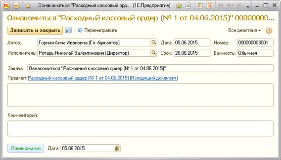 исполнителя, а после этого исполнитель фиксирует ознакомление этой задачи (Рис.