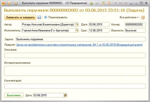 задачу «Выполнить поручение» для исполнителя (рис.17), а после