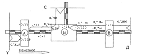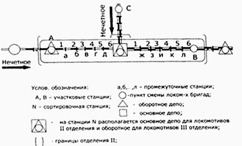 Рис. 1.1 Схема полигона железной дороги A-N-B