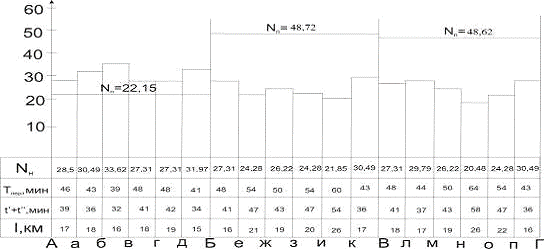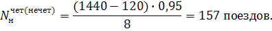 Для определения наличной пропускной способности по отдельным перегонам находим средний период графика: