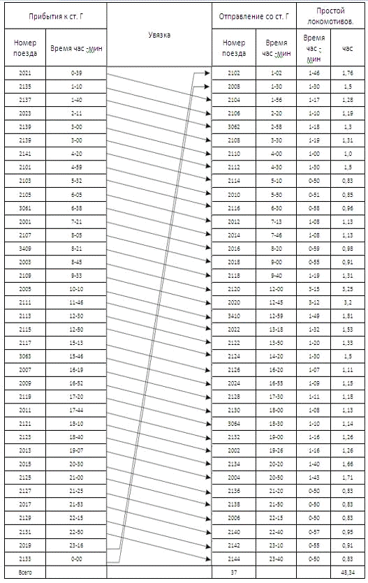Таблица 7.11 Ведомость оборота локомотивов на станции Г