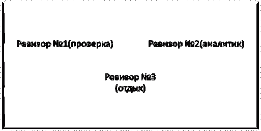 На каждый раздел расходов бюджета будут прикреплены по 3 ревизора. Ревизор №1 работает 2 недели, ревизор №2 занимается аналитикой по работе Ревизора №1 те же 2 недели. Через 2 недели на работу выходит ревизор №3, заменяя ревизора №2, а поледний в свою очередь заменяет ревизора №1, который уходит на двухнедельний отдых. И по такой системе каждые 14 дней. Систему смен можно разглядеть на рисунке 3.1