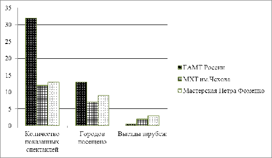 Рассмотрим более подробно выезды на гастроли каждого театра в