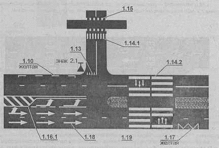 полосы движения, а также направление главной дороги в пределах перекрестка (рис