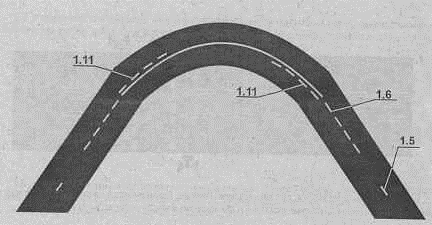 движения. Расстояние от края проезжей части до линии 1.1 должно быть не более