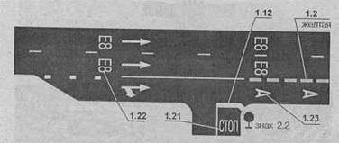 .21 (надпись <СТОП>) - предупреждает о приближении к разметке 1.12, если она применяется в сочетании со знаком 2.2;