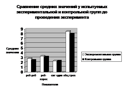 Таблица 17. Сравнение средних значений показателя у испытуемых экспериментальной и контрольной групп до реализации программы.