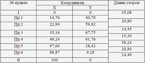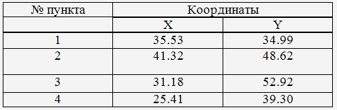 Координаты пунктов полигонометрического хода