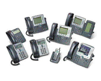 Рисунок 7 - IP-телефоны Cisco: модели 7920,7905G,7912G, 7940G, 7960G с модулем расширения 7914, 7970G и беспроводной IP-телефон Cisco 7920