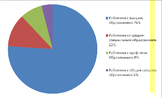 большинство сотрудников имеет высшее образование. Необходимо отметить, что в