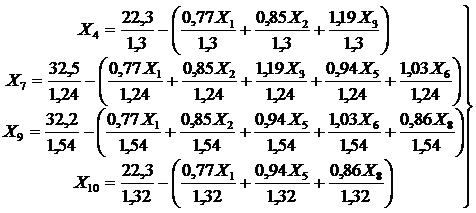 + 0,65Х2 + 0,91Х3)]+ 3Х5+ +2,2Х6 + 1,5 ×