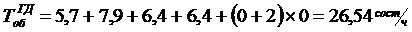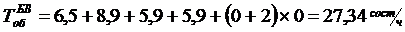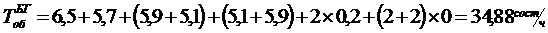 Eсли принять время хода пассажирских поездов по участкам: Б-В - 5,9 ч, В-Г - 5,1 ч; время на разгон и замедление - по 1 мин (в сумме - 0,07 ч); продолжительность стоянки пассажирского поезда на попутной станции 12 мин (0,2 ч); время нахождения состава «по обороту» на станции Б - 6,5 ч и на станции Г - 5,7 ч, то суммарное время оборота состава пассажирского поезда, следующего назначением Б-Г.