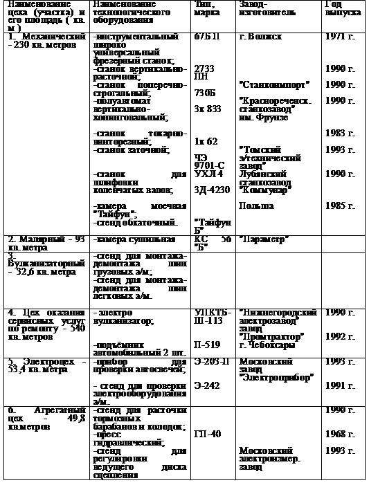 производственного процесса табл. 1.