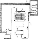 Состоит из: холодил. машины (компрессор, конденсатор, испаритель, регулирующий вентиль), рессивера, маслосборника, маслоотделителя и т.д.