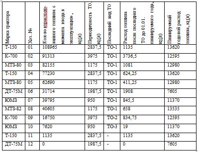 1. Расчет графика ТО тракторов, трудоемкости ТО и потребности в