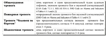 при других аварийных случаях, создающих угрозу судну и экипажу. Тревога “Человек за бортом” немедленно объявляется вахтенным помощником капитана при падении человека за борт или обнаружении человека (людей) за бортом. Шлюпочная тревога (при оставлении судна) объявляется только капитаном или другим лицом по указанию капитана при угрозе гибели судна, когда возникает необходимость оставления судна экипажем и пассажирами. Любой член экипажа, любое находящееся на судне лицо может поднять тревогу нажатием соответствующей кнопки, включением сигнализации либо с помощью средств связи.