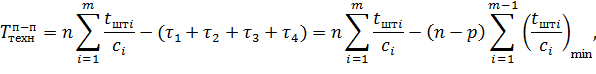 сi - количество оборудования или рабочих мест на i-й операции, из таблицы.