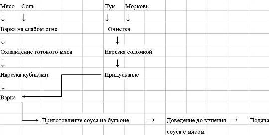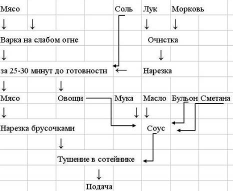 Рис. 2 Технологическая схема блюда «Бефстроганов
