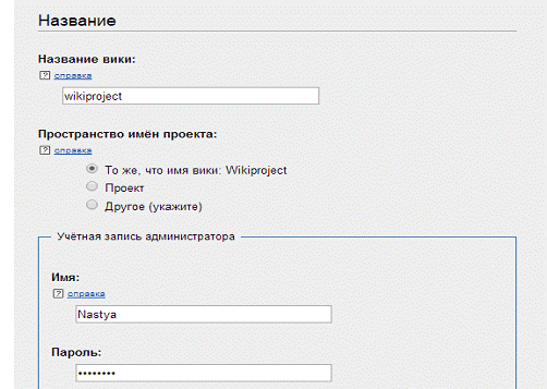 создаем первого пользователя (он же администратор) для будущей Вики.