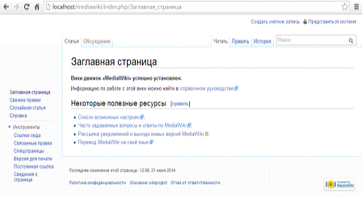 6) Появляется приветственное окно МедиаВики: