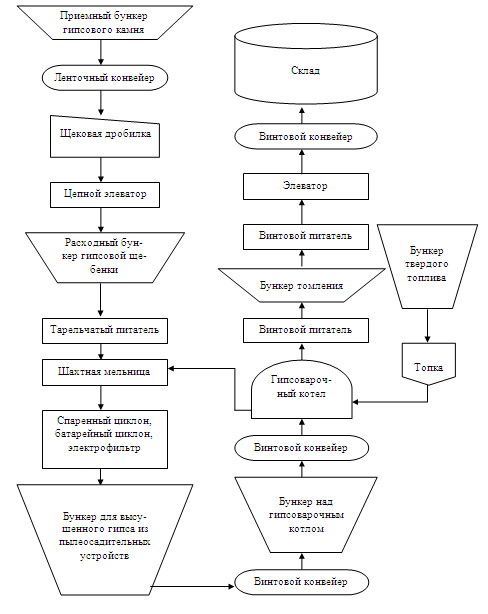 оборудование: щековая дробилки, шахтная мельница, гипсоварочный котел,