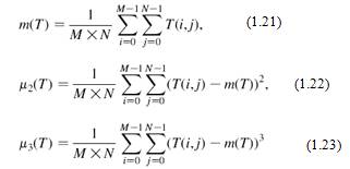 Особенности энергии, энтропии, инерции, местной однородности и корреляции в матрицах cо-вхождения вычислены соответственно как: