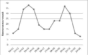Определим количество посетителей за день по формуле (5.2):дн=11+11+34+38+34+19+15+15+23+23+37+30+11+8=313