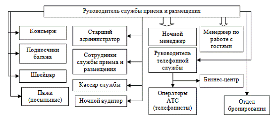 приема, служба горничных, служба питания, гаражная служба, аниматоры,