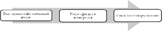Вероятность появления существенных искажений в бухгалтерском счете, однотипной группе хозяйственных операций, статье баланса, а также бухгалтерской отчетности организации в целом до того, как данные искажения будут обнаружены средствами системы внутреннего контроля, а также при условии допущения отсутствия таких средств называют внутрихозяйственным риском. Чистый риск характеризует степень подверженности существенным нарушениям счета бухгалтерского учета, статьи баланса, однотипной группы хозяйственных операций и отчетности в целом у проверяемого предприятия. [11]