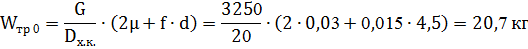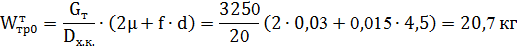 Момент сопротивления при передвижении тележки без груза: