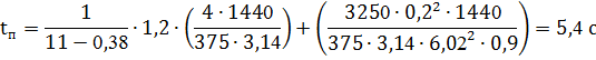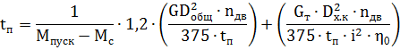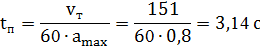 Время пуска при максимально допустимом ускорении: