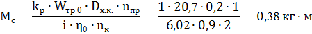 Момент сопротивления, приведенный к валу тормоза: