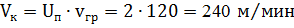 vт = 2,5 м/с = 150 м/мин - скорость передвижения