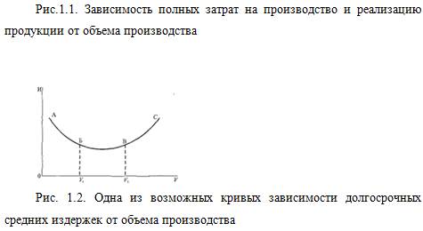 Минимальный эффективный размер предприятия достигается на участке 0V, и он продолжается до точки V2, так как на участке V1 - V2, фирма обеспечивает себе минимальные средние издержки.