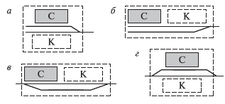 продольная (в) и поперечная (г): С - крытые склады, К - контейнерные площадки