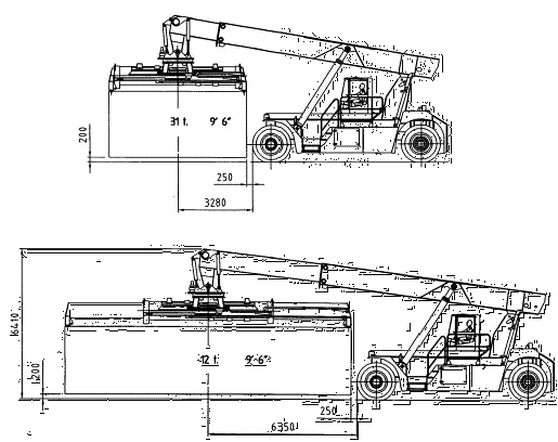 Основными характеристиками ричстакера являются грузоподъемность и этажность при работе с контейнерами. Практически все продуценты делают ричстакеры в варианте для работы с контейнерами высотой 2896 мм (9’6") и 2591 мм (8’6"). При этом если ричстакер способен укладывать шесть ярусов контейнеров высотой 2591 мм, то такая же этажность будет при работе с контейнерами высотой 2896 мм.