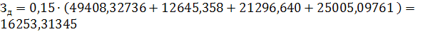 д) дополнительная заработная плата основных и вспомогательных рабочих, а также управленческого персонала за неотработанное время (оплата очередных отпусков, выполнения государственных обязанностей и др.), которая составит 15% размера оплаты труда: