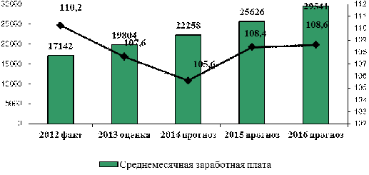 По оценке в 2013 году среднемесячная заработная плата достигнет 19,8 тыс. рублей, прирост в реальном выражении - на 7,6%.
