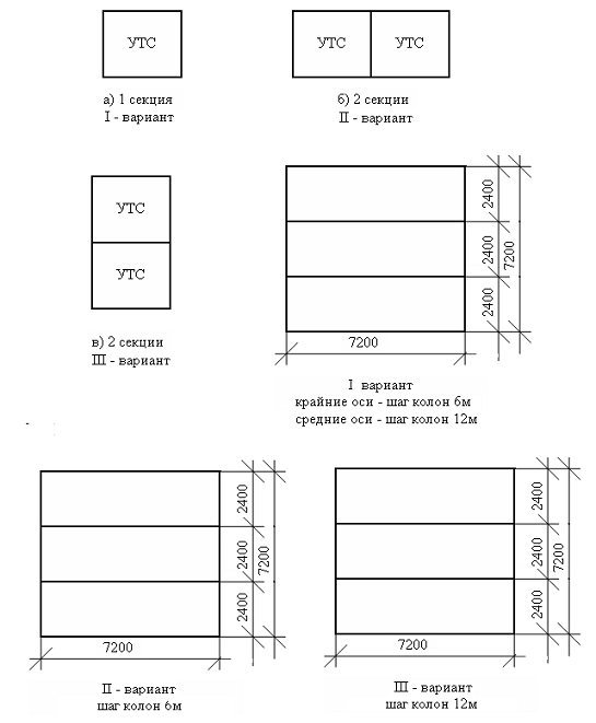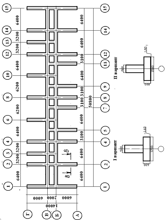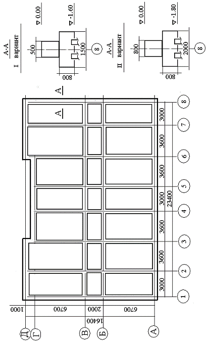 Для определения объема бетона (по варианту) на две, три секции необходимо объем бетона на одну секцию умножить на количество секций, но при этом учесть, что примыкание секций выполняется без устройства деформационных швов, т.е. последняя ось первой секции - это первая ось последующей. Значит, необходимо вычесть объем бетона в примыкании секций.