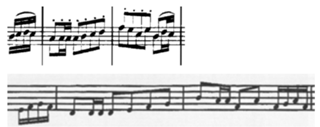 состоящий из групп по шесть нот, которые, в свою очередь, представляют собой