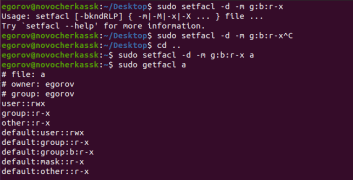 Если не задано иное, то все объекты, создаваемые в каталоге, у которого есть ACL-списки, не наследуют права ACL каталога, в котором они создаются. Но иногда возникают ситуации, когда необходимо, чтобы все объекты, создаваемые внутри каталога, наследовали его ACL права. Эта возможность называются ACL по умолчанию. Для добавления правил по умолчанию для каталога в команде setfacl используется ключ –d (default).