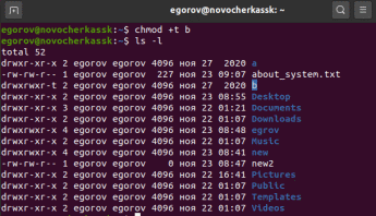 Еще одно важное усовершенствование касается использования sticky-бита в каталогах. В отличии от установки sticky на каталог, на файл такой бит устанавливать не имеет смысла. Каталог с установленным sticky-битом означает, что удалить файл из этого каталога может только владелец файла или суперпользователь.