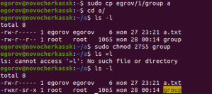 5. Разрешить группе чтение, владельцу - чтение и запись файла. Для каталога группе разрешить чтение и выполнение. Для выполнения задания использовать запись прав в 8 сс и маску прав.