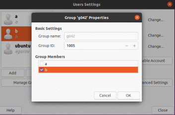 3. Создать группу пользователей с именем g **2 и пользователя с именем b в этой группе, используя графический интерфейс пользователя.
